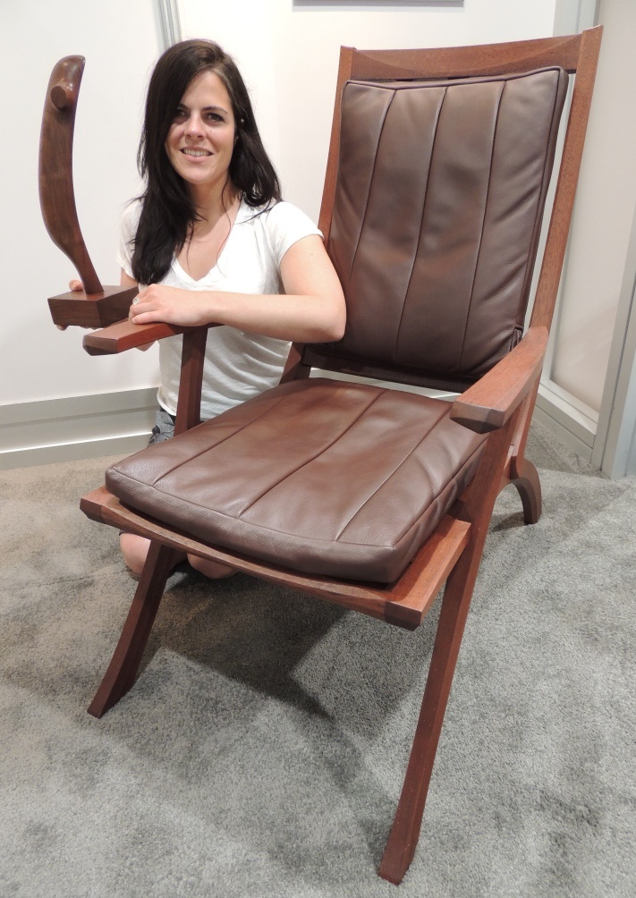 Mollie Ferguson, Best of Show Award winner in the 2013 Fresh Wood competition, received a coveted wood sculpture designed by woodworking icon Sam Maloof. Her chair, “dulcius ex asperis” (sweeter after difficulties), also won a first place award and other prizes.