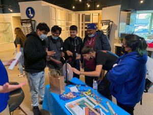 At the SWM booth, students answered wood trivia questions for a chance to “spin the wheel” and win prizes including t-shirts, hats, and bluetooth speakers. The students were engaged and excited to play. Some of the trivia questions were: