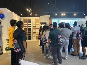 AWFS® staff and SWM volunteers participated in two events for MFG Day on Friday, October 7 that served nearly 500 students and their teachers in Southern California. The students came from several different schools throughout Orange County, Los Angeles County, and San Diego County. Due to COVID, many had never been to a MFG Day event or seen a manufacturing facility. One teacher shared that his students were still talking about the event days later and some parents had sent him thank you e-mails. One of the events was held at Reborn Cabinets. Reborn has been a long-time education supporter and MFG Day host. Over 400 students visited their production facility and showroom in Anaheim. The students were treated to a tasty hamburger lunch by Reborn, and were able to visit with local vendors/employers including SWM, HopeBuilders, Dale Carnegie, and Royal Plywood.