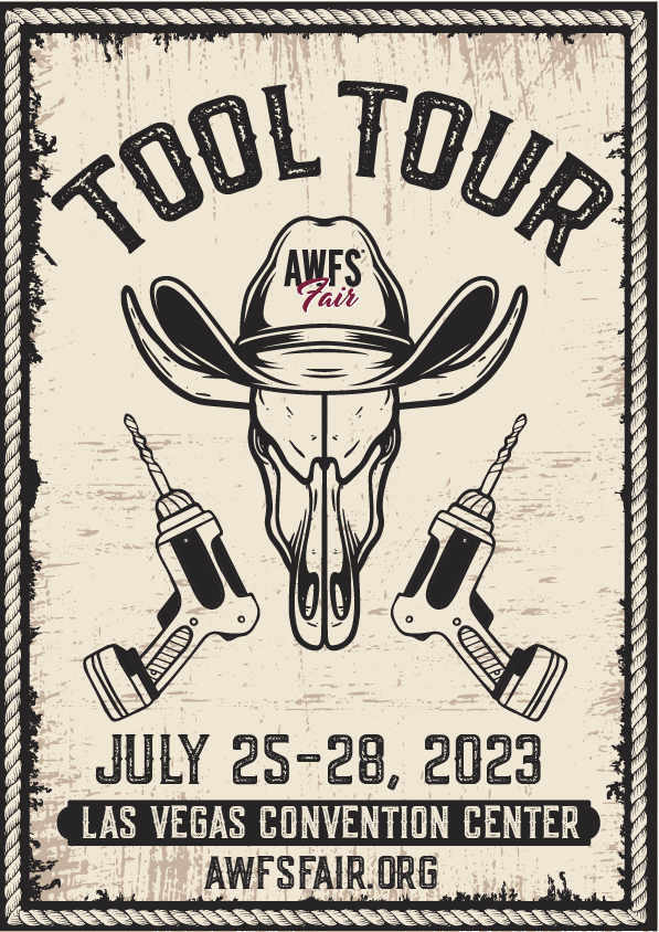 The Tool Tour is a feature at the AWFS®Fair that highlights manufacturers and suppliers of hand and power tools and small equipment, which are essential product categories for all woodworking manufacturers, regardless of shop size. All participating exhibiting booths act as Tour stops. Attendees will be encouraged to visit these stops throughout the show, through the AWFS® Fair App. After completing the Tour, attendees will receive a commemorative, concert-style tour shirt, featuring the 2023 Tool Tour logo. This year, Tool Tour will have a western theme, so get your lassos ready!