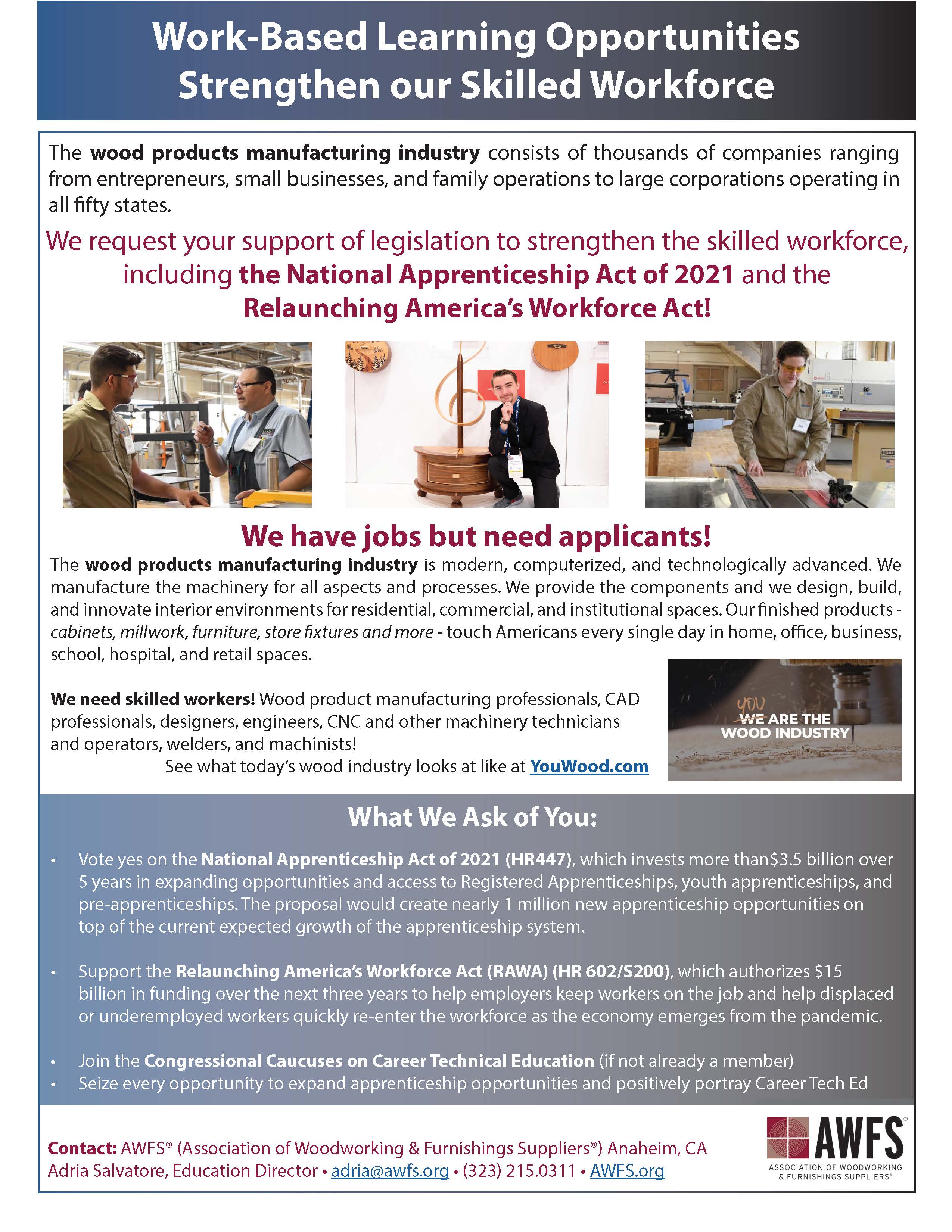 Requests your support to expand apprenticeship opportunities and other legislation to strengthen our skilled workforce!